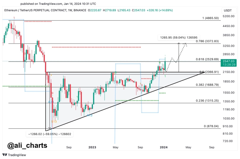 지난 16일(현지시간) 데일리 호들에 따르면 15일 가상자산 애널리스트 알리 마르티네즈(Ali Martinez)는 자신의 X(옛 트위터)에 "이더리움이 상승 삼각형에서 벗어났으며, 단기 변동성에도 불구하고 계속 3400달러를 향해 나아가고 있다"고 전했다.
