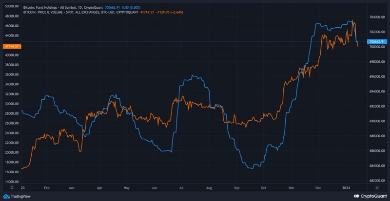 앞서 비트코인(BTC) 현물 ETF 승인이 있기 전 해당 지표는 7 이상의 높은 수준을 유지했다. 이후 ETF 승인 뒤 가격이 4만9000달러까지 치솟았으나, 이내 하락한 바 있다. 이를 근거로 크립토퀀트는 "조만간 매도 압력으로 가격 조정이 발생할 가능성이 높다"고 전했다.