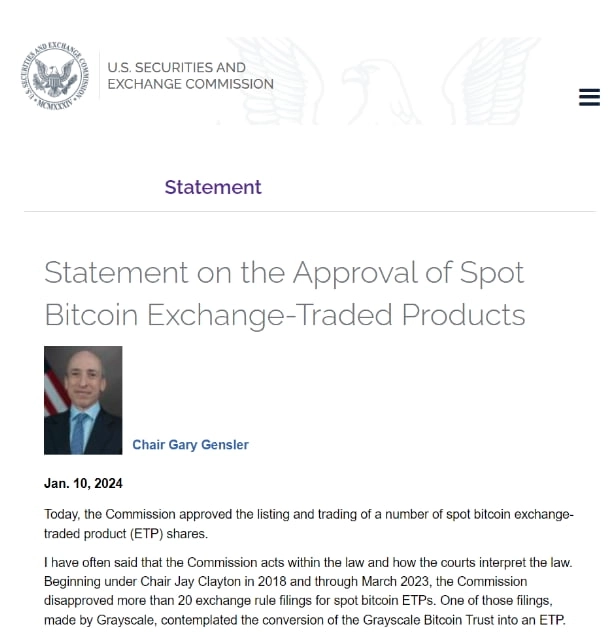 이어 게리 겐슬러 의장은 성명서를 통해 “(과거와) 상황이 달라졌다”며 “비트코인 현물 ETP(상장지수상품)의 상장과 거래를 승인하는 것이 가장 지속할 수 있는 길”이라고 승인 이유를 밝혔다.