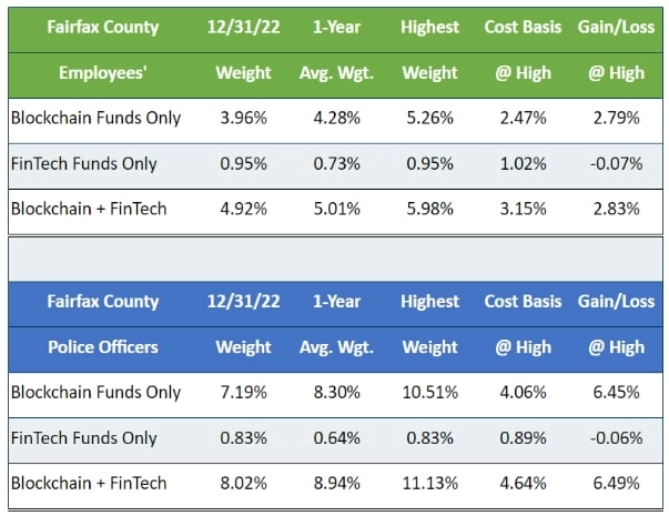 미국 버지니아주 페어팩스 카운티 직원 및 경찰 연금이 2018년부터 여러 가상자산 관련 펀드에 투자한 것을 비롯해, 2021년에는 미국 텍사스주 휴스턴 소방관구호퇴직연금(HFRRF)이 비트코인과 이더리움을 약 2500만 달러 매입했다.