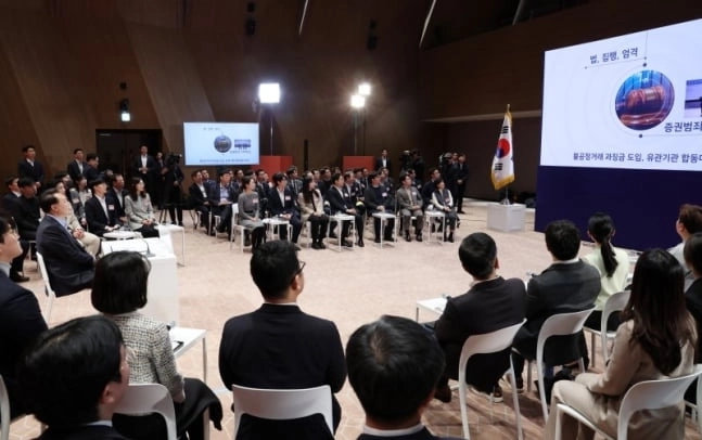 윤석열 대통령은 17일 서울 여의도동 한국거래소에서 ‘상생의 금융, 기회의 사다리 확대'를 주제로 한 국민과 함께하는 민생 토론회를 개최하고 “주식시장 발전을 저해하는 과도한 세제를 개혁해 ‘코리아 디스카운트(국내 증시 저평가)’를 근본적으로 해결하겠다”며 이같은 방침을 밝혔다. 이날 토론회는 금융위원회의 올해 금융정책 업무보고를 겸해 열렸다.
