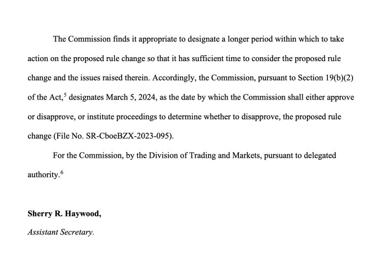 이어 "SEC는 제19조(b)(2)항에 따라 피델리티 이더리움 펀드의 승인 결정 날짜는 오는 3월 5일로 지정한다"고 전했다.