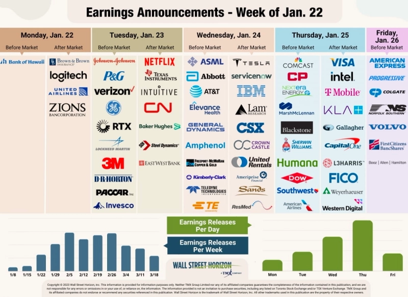 찰스 슈왑은 다음주 본격화될 기술주 실적 발표가 관건이라고 봅니다. 22일 넷플릭스 23일 테슬라와 IBM이 실적을 내놓고요. 반도체 회사인 웨스턴디지털과 텍사스 인스트루먼츠, 인텔, ASML, 램리서치, KLA 등도 대기하고 있습니다. 반도체 업체들이 TSMC가 내놓은 전망을 재확인해준다면 좋은 징조가 될 것입니다. 그 다음주인 1월 30일에는 마이크로소프트와 알파벳, 2월 1일 애플이 실적을 공개합니다. 애플의 실적 발표는 마이크로소프트, 엔비디아(2월 21일)와 함께 결정적 순간이 될 수 있습니다. TSMC는 올해 실적이 나아질 것이라고는 했지만 그 이유가 "AI 수요"라고 꼭 짚어 말했습니다. 스마트폰 시장에 대해선 단기적 약세를 경고했지요.