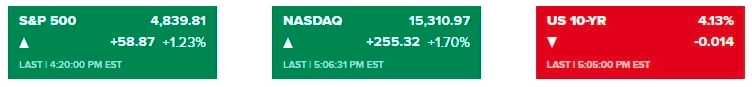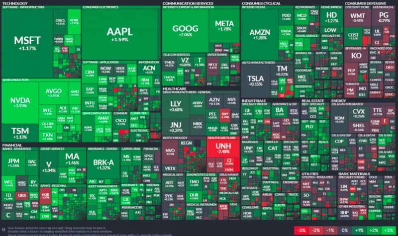 엔비디아 등 반도체 주식이 폭등하면서 시장을 이끌었고 매그니피선트 7(magnificent 7) 주식이 뒤에서 밀었습니다.