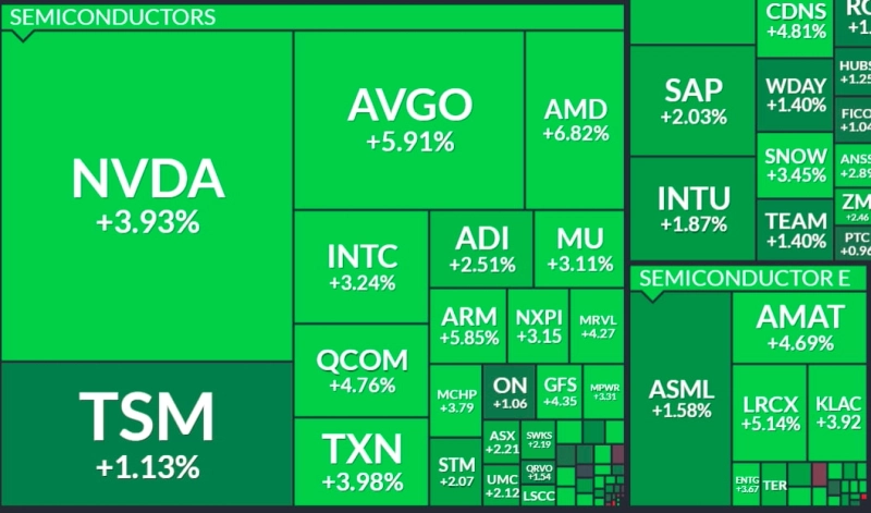 엔비디아 AMD 인텔 퀄컴 등 반도체 주식들은 질주했습니다. 필라델피아 반도체 지수는 어제 3.4% 오른 데 이어 오늘은 4% 뛰었습니다.