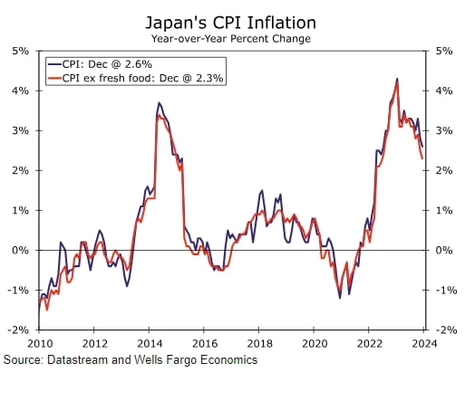 다음주 일본은행, 캐나다, 유럽 중앙은행이 정책 결정 회의를 합니다. 모두 동결이 예상됩니다. 일본의 경우 12월 근원 CPI가 11월 2.5%에서 2.3%로 둔화하면서 정책 긴축에 대한 기대가 감소하고 있습니다.