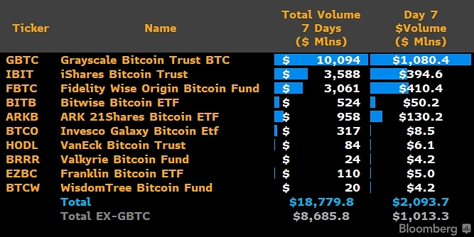 비트코인(BTC) 현물 ETF 거래량이 하루 동안 20억달러를 넘어서면서 여전한 강세를 보이고 있다.