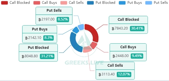 그릭스라이브는 "투자자들이 월물 포지션을 이동한 영향으로 지난 24일 블록딜을 통한 대규모 비트코인 콜옵션은 전체 거래량의 30%를 차지했다"라며 "대규모 풋옵션도 전체 거래량의 30%에 달했다"라고 설명했다.