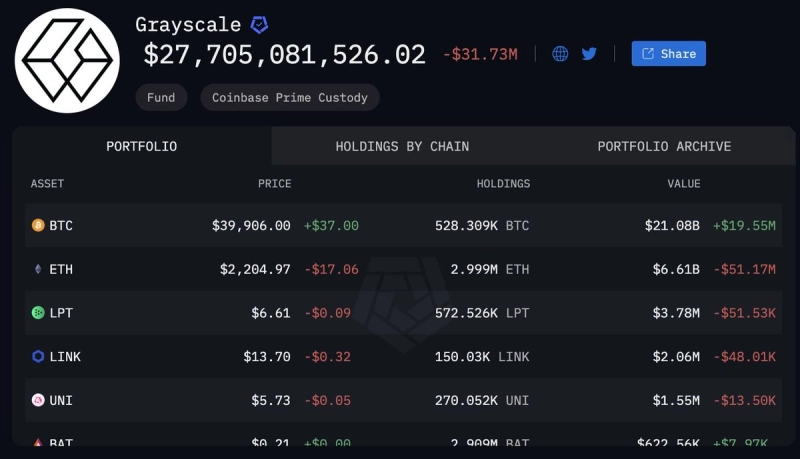 아이는 "그레이스케일은 ETF 승인 이후로 총 10만5913 BTC(약 43억3700만달러)를 가상자산 거래소로 이체했다"면서 "현재 그레이스케일은 온체인 지갑에 52만8000 BTC를 보유하고 있다"라고 덧붙였다.