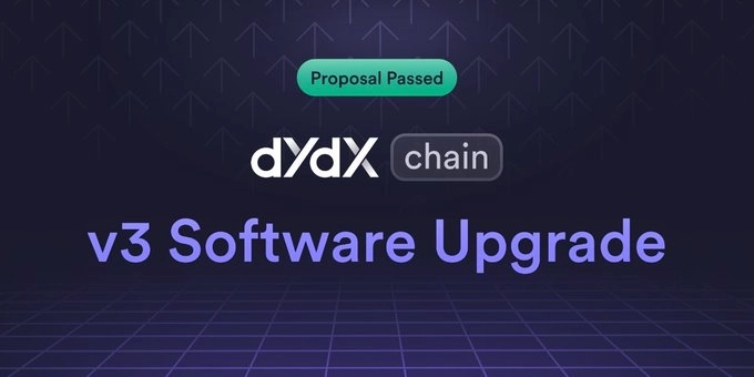 27일 dYdX 재단은 엑스(옛 트위터)를 통해 "dYdX 체인 프로토콜 소프트웨어를 v3.0 버전으로 업데이트하기 위한 투표가 찬성표 98.9%를 기록하며 통과했다"라고 밝혔다.