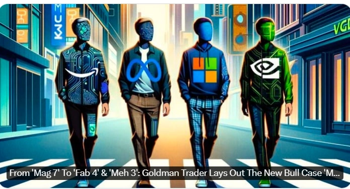 골드만삭스의 트레이딩 데스크에서도 아마존과 마이크로소프트, 메타, 엔비디아는 'Fab 4'(엄청난 4, fabulous 4)라고 지칭하고 애플 테슬라 알파벳은 'Meh 3'(별로 3)로 부르면서 이들이 두 부류로 나뉘고 있다고 지적했습니다.