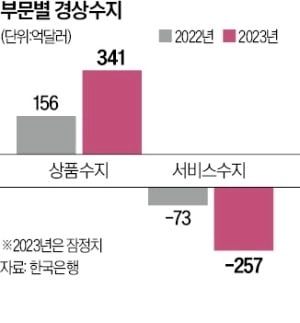 하지만 2021년 852억달러 수준을 회복하지 못했다. 서비스수지가 크게 부진해서다. 작년 서비스수지는 256억6000만달러 적자로 2019년 268억5000만달러 이후 4년 만에 가장 큰 적자를 기록했다. 특히 여행수지 적자가 125억달러에 달했다.