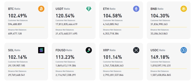 보고서에 따르면 비트코인(60만9477BTC, 102.49%), 테더(214억7246만511USDT, 120.5%), 이더리움(435만3718ETH, 104.58%) 등 모든 자산이 플랫폼 사용자 보유량보다 많았다.