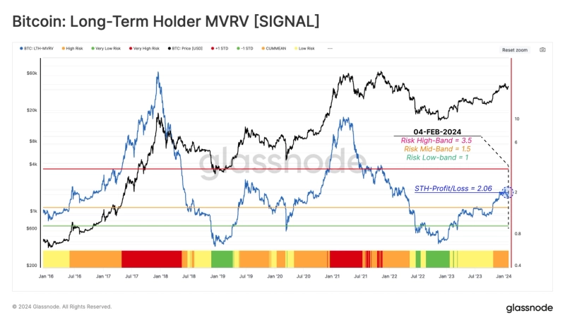 12일(현지시간) 코인텔레그래프가 인용한 글래스노드 분석에 따르면 비트코인 장기 가치 평가를 나타내는 지표가 고위험 영역에 진입한 것으로 파악된다.