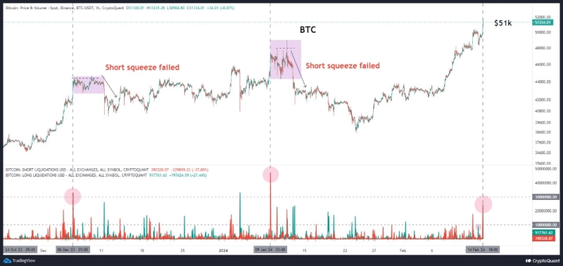 이날 맥디(MAC_D) 크립토퀀트 분석가는 "비트코인의 급등으로 2700만달러 규모의 숏 포지션 청산이 발생했다"면서 "이후 숏 스퀴즈가 성공하기 위해서는 현물 매수세를 동반한 상승 변동성이 필요하다"고 말했다.