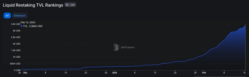 DWF 벤처스는 "이더리움(ETH)의 리스테이킹 생태계가 성장하고 있다"라며 "리스테이킹 프로토콜로 유입된 총 예치자산(TVL)은 33억달러를 돌파하며 전월대비 8배 급증했다"라고 강조했다.
