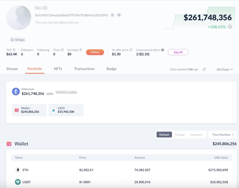 또한 같은날 이 지갑은 5000만 테더(USDT)를 바이낸스에 입금한 것으로 나타났다. 앞서 해당 지갑은 지난 18일에 HTX에서 5억 USDT를 인출한 바 있다.