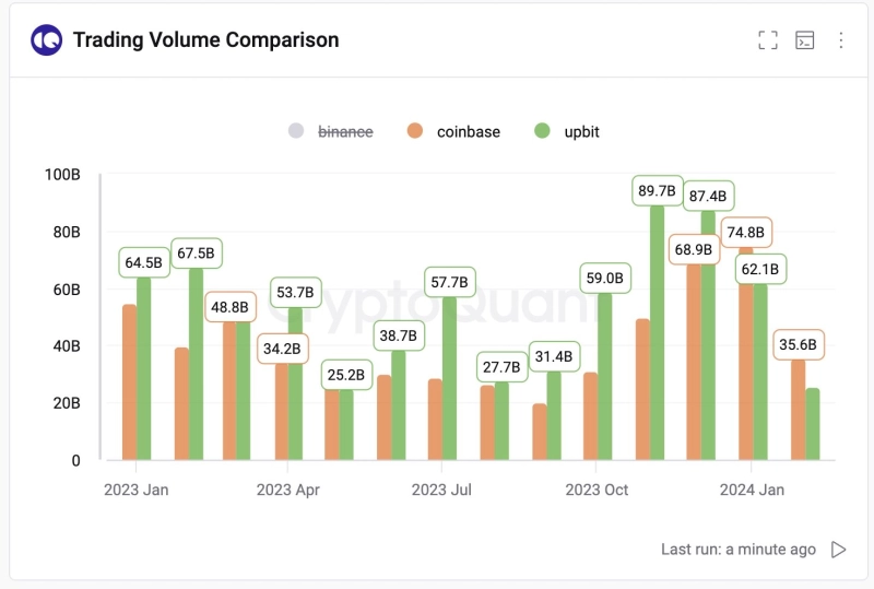 업비트, 코인베이스 거래량 압도…"韓 수요 과소평가 말아야"