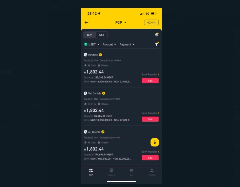 20일(현지시간) 코인텔레그래프에 따르면 나이지리아에서 바이낸스 P2P앱을 통해 테더(USDT)를 판매하는 사람들은 가격을 반드시 1테더당 1802나이라(약 1512원) 이하로 설정해야 한다. 만약 1802나이라 이상으로 테더 판매를 시도하는 계정은 차단된다.