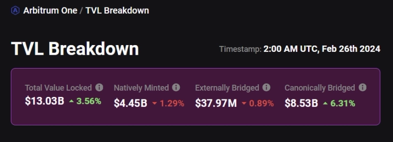 이더리움(ETH) 레이어2 네트워크 아비트럼 원(Arbitrum One)의 락업예치금(TVL)이 130억달러를 훌쩍 넘겼다.