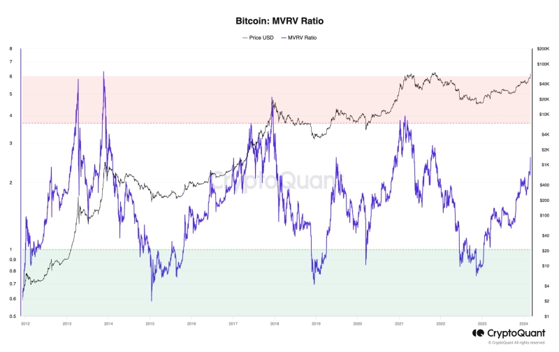 29일 가상자산(암호화폐) 분석 플랫폼 크립토퀀트(CryptoQuant)의 주기영 대표는 X(옛 트위터)를 통해 "비트코인의 MVRV는 2.5를 돌파했다"면서 "현재 비트코인 지갑들은 평균적으로 150%의 수익률을 기록하고 있다"라고 밝혔다.