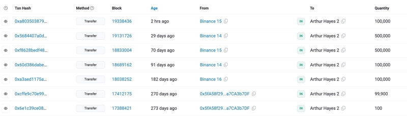 아서 헤이즈 비트멕스 창립자가 130만개의 펜들(PENDLE)을 바이낸스에서 인출한 것으로 드러났다.