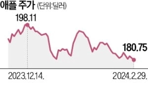 AI 급등장서 애플만 소외애플 주가는 29일(현지시간) 전일보다 0.37% 하락한 180.75달러로 마감했다. 전날 전기차 사업을 포기한다는 소식에 주가가 강보합세를 나타냈지만 하루 만에 하락세로 전환한 것이다. 올 들어 빅테크 종목은 급등한 데 비해 애플 주가는 연초보다 6.12% 떨어졌다. 애플은 올초 마이크로소프트(MS)에 시가총액 1위 자리를 내주기도 했다.