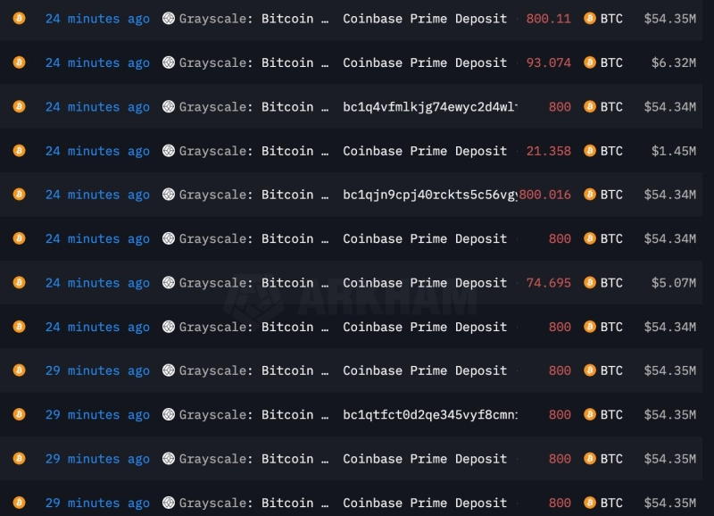 그레이스케일이 대량의 비트코인(BTC)을 거래소로 이체했다.