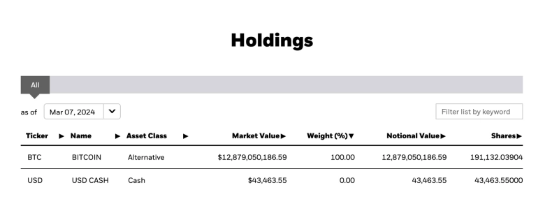 8일(현지시간) 블랙록이 업데이트한 현물 비트코인 ETF 'IBIT' 포지션 데이터에 따르면 현재 IBIT는 총 19만1132개의 비트코인을 보유 중이다. 이는 약 129억달러에 달하는 규모다.