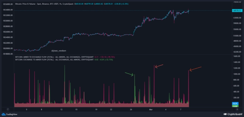9일(현지시간) 가상자산(암호화폐) 분석 플랫폼 크립토퀀트(CryptoQuant)의 조아오웨드슨(joaowedson) 분석가는 퀵테이크 리포트를 통해 "오는 4월로 예정된 반감기가 다가오면서 채굴자들은 비트코인을 거래소로 더 많이 전송할 수 있을 것"이라며 "채굴자는 채굴 수익 감소와 관련된 위험을 완화하려 시도할 수 있다. 수익을 보전하기 위한 압박을 받을 수 있다"라고 분석했다.