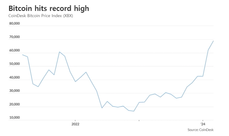 11일 마켓워치에 따르면 암호화폐 투자 펀드 운용사 3iQ의 마크 코너스 리서치 책임자는 최근 인터뷰에서 “비트코인 현물 상장지수펀드(ETF)가 기관 투자 자금의 유입세를 가속화하면서 다음 달 반감기 도래 이전 비트코인 가격이 10만달러에 도달할 수 있다”고 말했다.