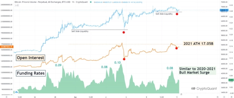 비트코인(BTC)의 미결제약정 규모가 사상 최고 수준에 달하면서, 가격 변동성에 주의할 필요성이 제기됐다.