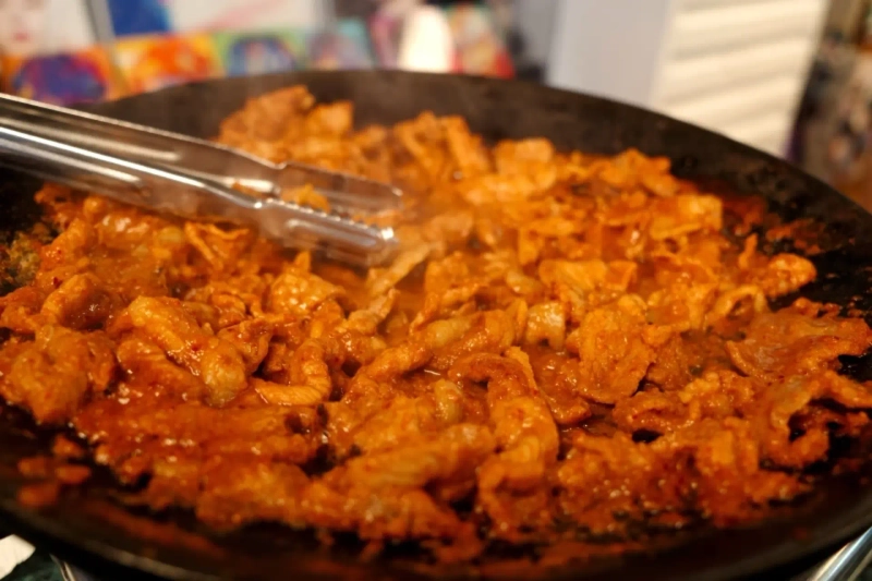 얘기를 나누던 중 철판에 올려진 흑돼지 제육볶음이 나왔다. 매콤달콤한 제육볶음은 함께 나온 신선한 쌈 채소와 좋은 궁합을 이뤘다. 주로 나물로 구성된 밑반찬은 깔끔하고 정갈한 맛이었다. 식당 안에는 같은 제육쌈밥을 먹고 있는 외국인 손님들도 제법 눈에 띄었다.