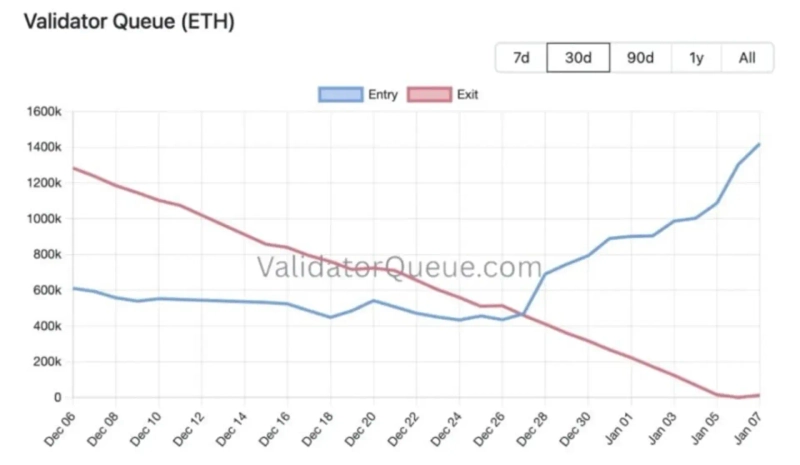 스테이킹 확대도 구조적 지지 요인으로 거론됩니다. 기관 참여가 늘어나면서 대형 플레이어들이 대규모 스테이킹을 이어가고 있고, 비트마인은 약 78만 ETH를 스테이킹에 예치한 것으로 알려졌습니다. 네트워크 전체적으로는 130만개 이상의 이더리움이 스테이킹 대기 상태인 반면, 밸리데이터큐에 따르면 검증자 출금 대기열은 사실상 제로에 가깝습니다. 스테이킹이 늘면 유통 물량이 쉽게 시장에 풀리지 않는 구조가 만들어지기 때문에, 단기 변동성은 있어도 장기적으로는 매도 압력을 제한할 수 있습니다.
