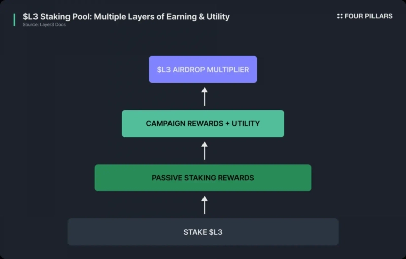 - 레이어3는 $L3 토큰, 바이앤번(buy and burn) 구조, 계층형 스테이킹을 통해 플랫폼 성장과 토큰 가치를 연동하는 가치 포착형 플라이휠을 설계했다고 전했다.