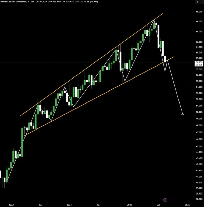 이날 비트코인 도미넌스(BTC Dominance, 전체 가상자산 시가총액 중 비트코인이 차지하는 비중)는 58.22%로 지난 25일 이후 소폭 반등했다. 비트코인 시세가 상승하면서 도미넌스가 오른 것은 대다수 알트코인보다 비트코인으로 더 많은 자금이 유입됐음을 보여준다.