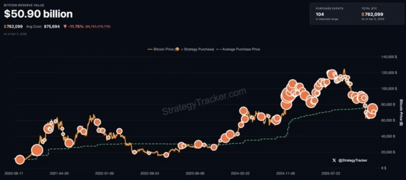 스트래티지는 지난 3월 말 약 1주일간 매수를 중단하며 올해 처음으로 주간 매수 흐름이 끊긴 바 있다. 마지막 매수는 3월 23일로, 당시 약 7700만달러 규모의 비트코인을 개당 7만4326달러에 매입했다.