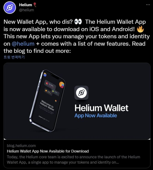 블록체인 기반 탈중앙화 통신 네트워크 프로젝트 헬륨(HNT)이 모바일 월렛을 출시했다고 9일 밝혔다.