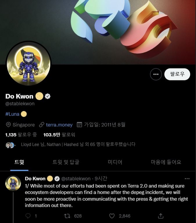 전날 본인의 트위터 계정을 폐쇄한 권도형 테라폼랩스 대표가 오늘(10일) 다시 트위터를 공개로 전환했다.