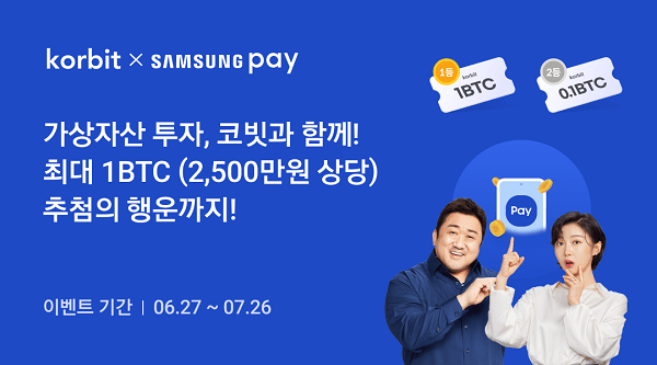 이번 이벤트는 지난 27일부터 7월 26일까지 한 달간 진행되며 이 기간 삼성페이 앱을 통해 코빗에 신규 가입한 고객을 대상으로 시크릿 코드를 등록하면 다양한 혜택을 제공한다.