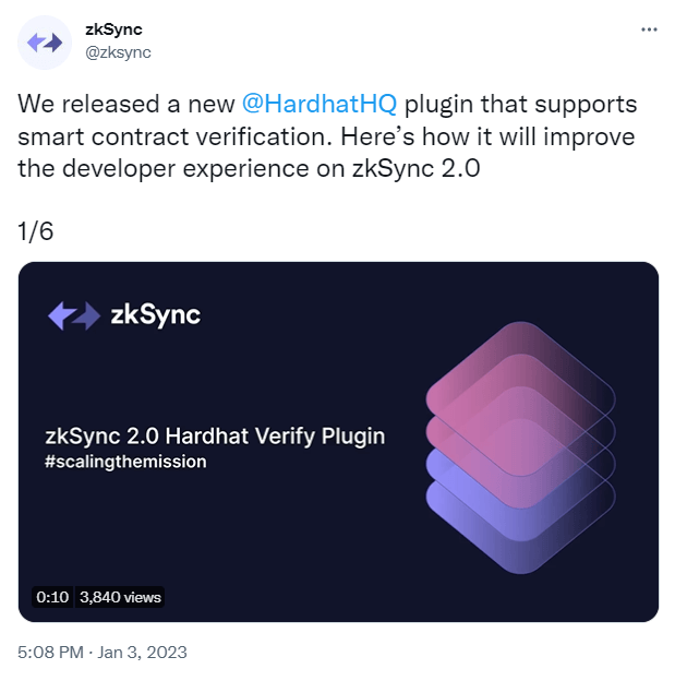 해당 플러그인을 이용하면 개발자는 터미널 및 프로그래밍 방식에서 zkSync 2.0에 배포된 스마트 컨트랙트를 확인할 수 있다.