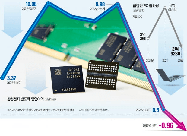 분위기가 바뀐 건 반도체 시황이 예상보다 빠르게 악화하면서 업계 최고 수익성을 자랑하는 삼성전자마저 실적 방어의 필요성이 커졌기 때문이다. 삼성전자 내부에선 "현재 상황이 지속되면 1분기 적자 규모가 시장 전망치(1조원 안팎)를 크게 웃돌 것"이란 얘기도 나온다.