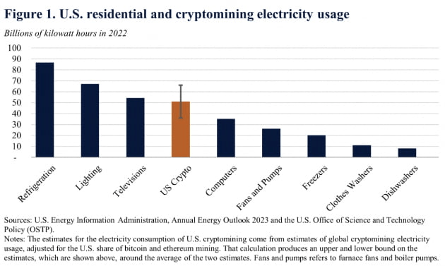 아울러 가상자산 채굴로 사용되는 연간 전력량이 미국 300만 가구에서 1년간 사용하는 전력과 맞먹는다며 미국 전력망에 부정적인 영향을 미치고 전기 가격을 상승시킬 수 있다는 주장도 더했다.