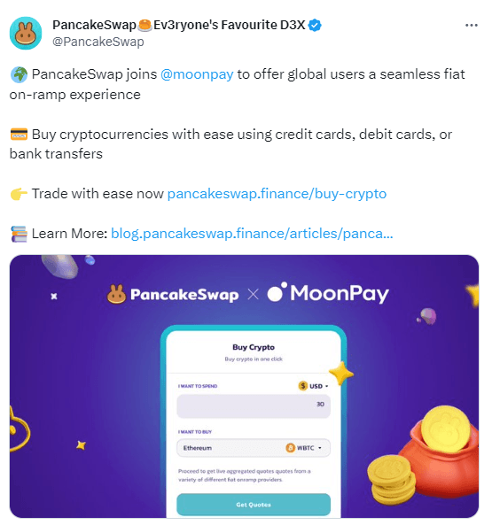 이용자는 이에 해당 파트너십을 통해 신용카드 및 직불 카드, 은행 송금을 활용한 팬케이크스왑 이용이 가능해진다.
