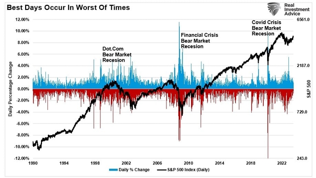 S&P 500 지수가 가장 큰 폭으로 상승한 날은 최악의 시기에 나오는 경향이 있다는 점에서 이 말은 옳다.