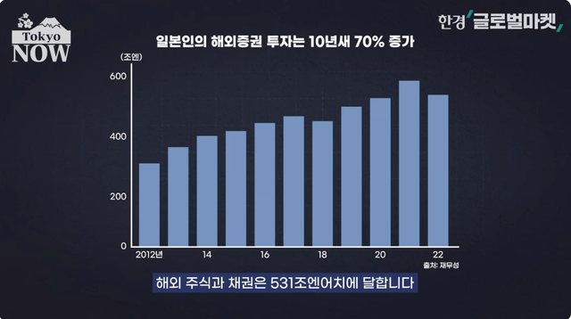 그 결과 작년 3분기에만 연율 환산 19조7284억엔의 부가 해외로 빠져나간 것으로 추산된다. 1994년 이후 최대 규모다. 일본 재무성에 따르면 작년 말 현재 일본 투자가가 들고 있는 해외 주식과 채권은 531조엔어치에 달한다. 한국 국내총생산(GDP)의 2.5배에 달하는 규모다. 지난 10년간 해외로 빠져나간 부, 즉 해외 증권투자 규모는 70% 급증했다.