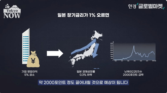 기업 실적에도 악영향을 미칠 가능성이 크다. 미즈호리서치&테크놀로지는 장기금리가 0.5%포인트 오르면 늘어나는 이자부담 탓에 일본 기업의 영업이익이 2.4% 줄어들 것으로 예상했다. 이자부담이 큰 운수·우편업과 부동산업의 영업이익은 4~5% 감소할 것으로 전망된다. 이 연구소는 "장기금리가 1% 오르면 기업의 수익이 5% 줄고, 일본의 GDP도 0.3% 감소할 것"이라고 분석했다.