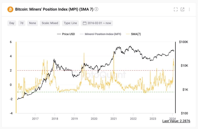 가상자산(암호화폐) 채굴업체들이 비트코인(BTC) 매도를 시작한 것으로 보인다고 1일 주기영 크립토퀀트 대표가 밝혔다.